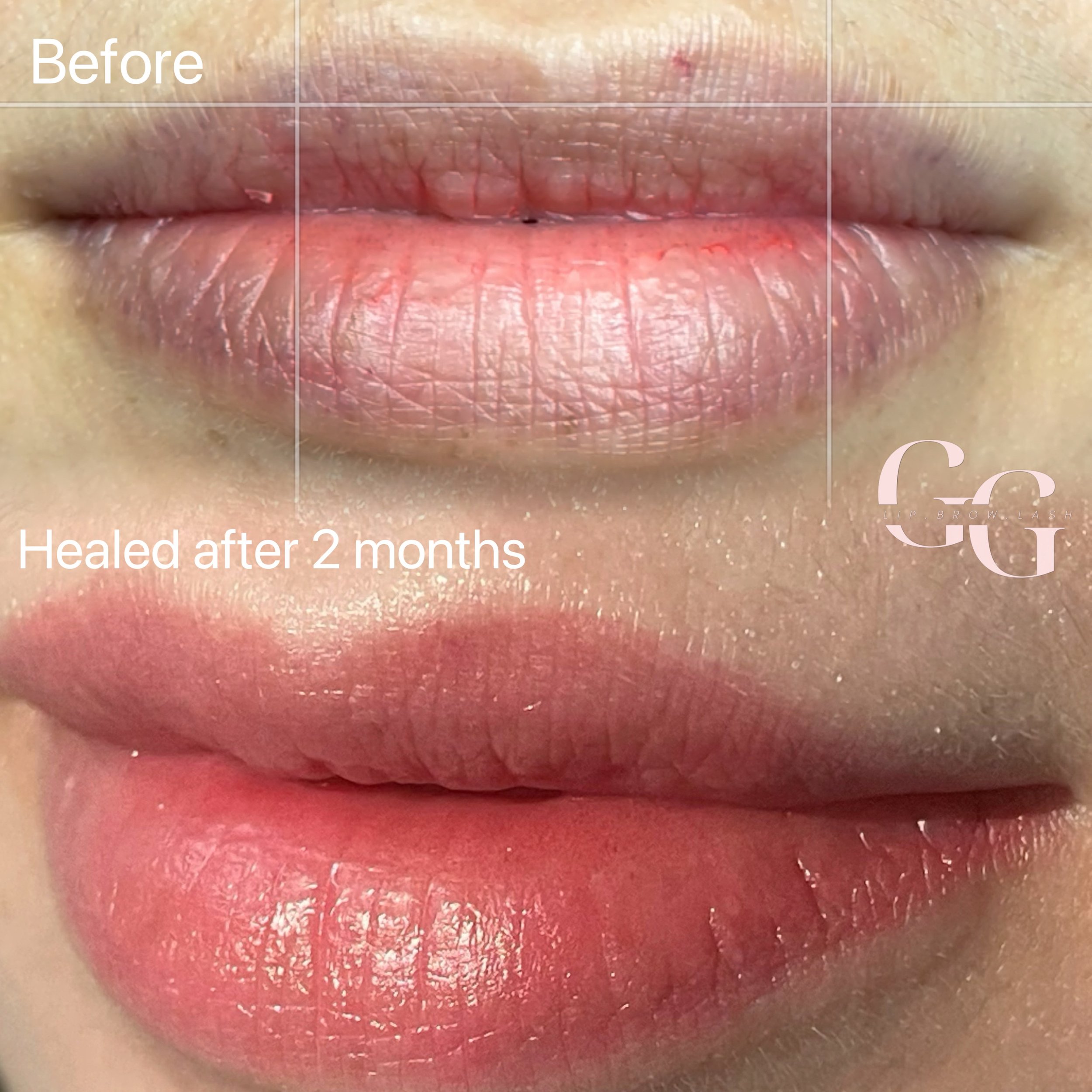 Ombre lip blushing, before/after one session by Gigi Beauty