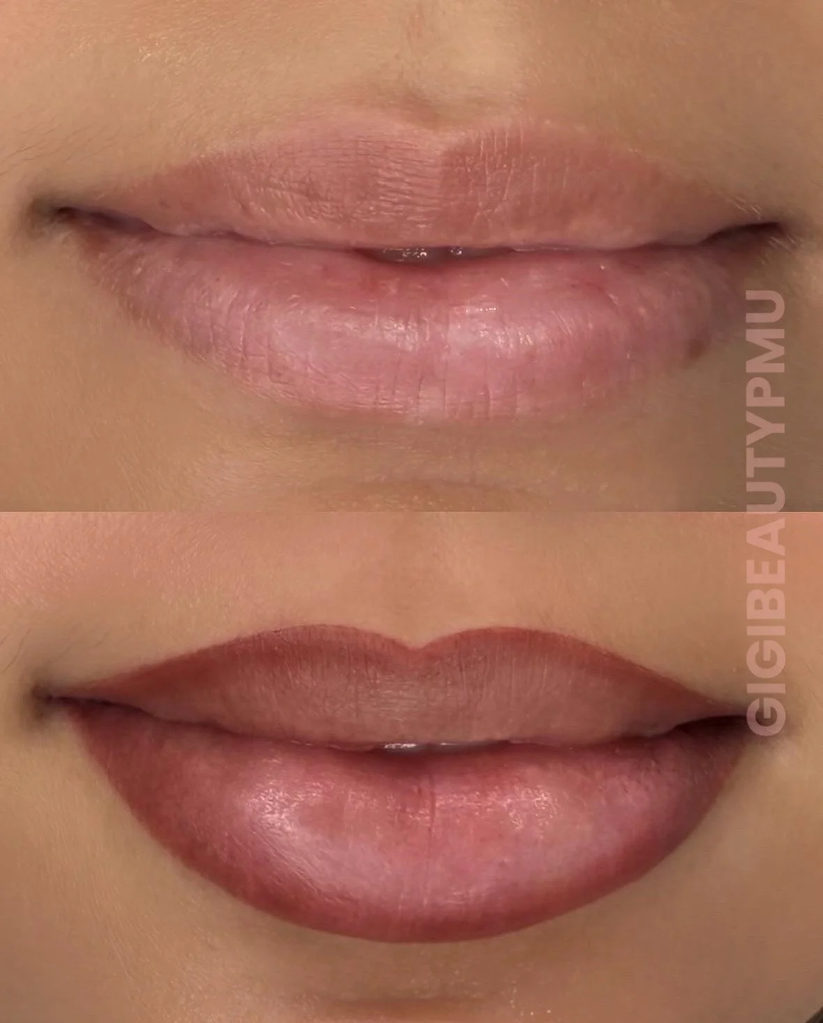 This method is applied to lips that have had permanent makeup for a long time or to lips with dark pigmentation that need to be balanced to a neutral tone.